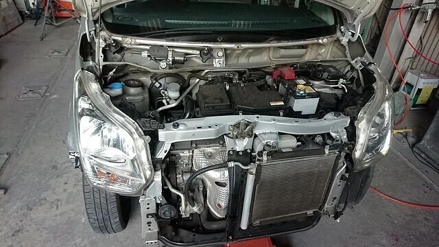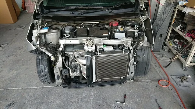 コアサポートをはずして、新品に交換させていただきました。修理で対応できることもございますが、今回は損傷がひどかったので新品対応です。