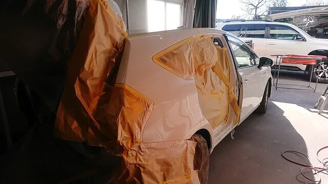 栃木県那須郡 鈑金塗装 トヨタ プリウス ドア リヤフェンダー バンパー 事故修理