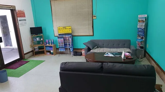 当店は国に認められた指定工場。だから車検・修理に必要な最新設備が揃っているんです。また時間を気にせずご相談いただける商談スペースや、車検・修理中もゆっくりとお過ごしいただける待合スペースを完備しております。
